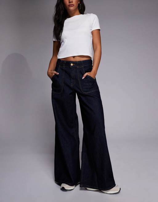 River Island baggy wide leg jeans in dark denim