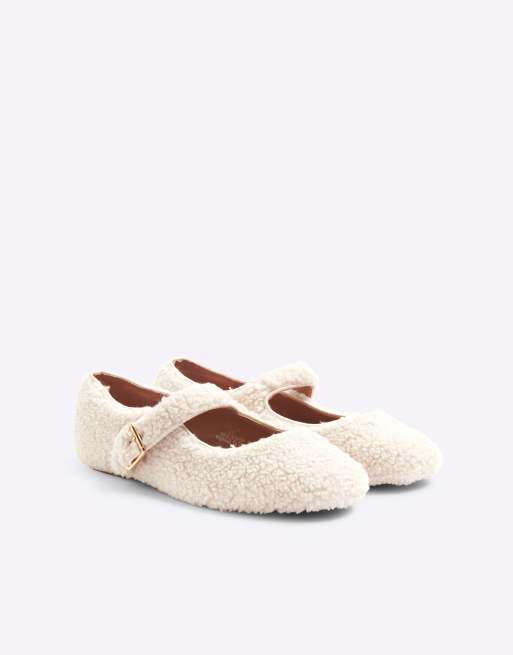 River Island borg mary jane ballets in white