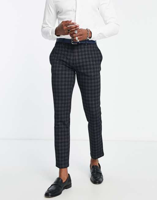 River Island buffalo check smart pants in navy