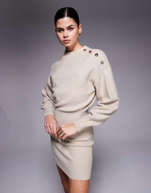 River Island button-detail jumper dress in cream
