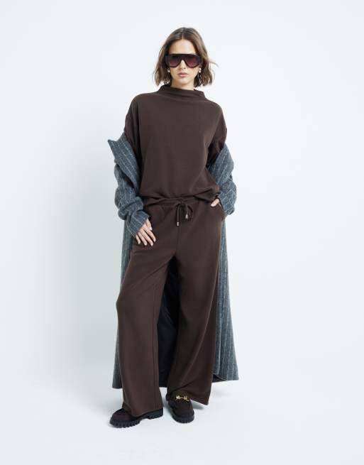 River Island cosy wide leg pants in dark brown