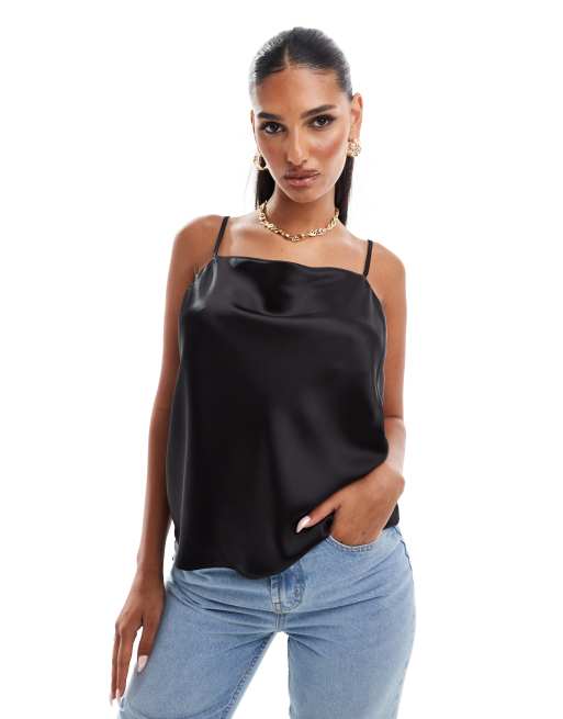 River Island cowl neck satin cami top in black