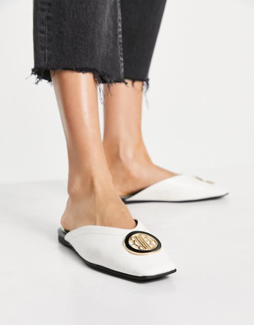 River Island croc square toe flat mule in white