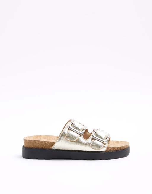 River Island double buckle sandals in gold