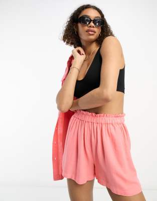 River Island elasticated waist linen shorts in pink (part of a set)