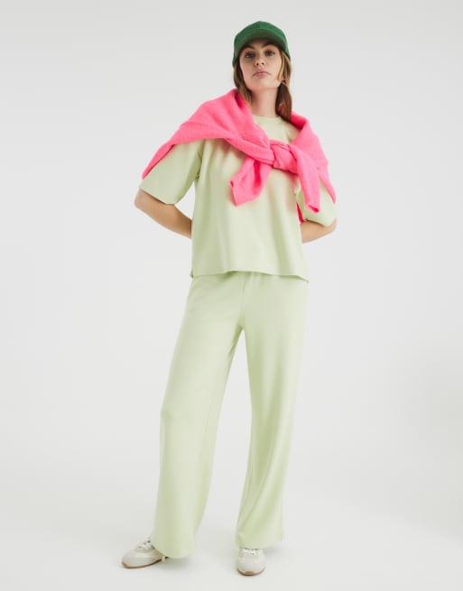 River Island high waisted wide leg trackies in green