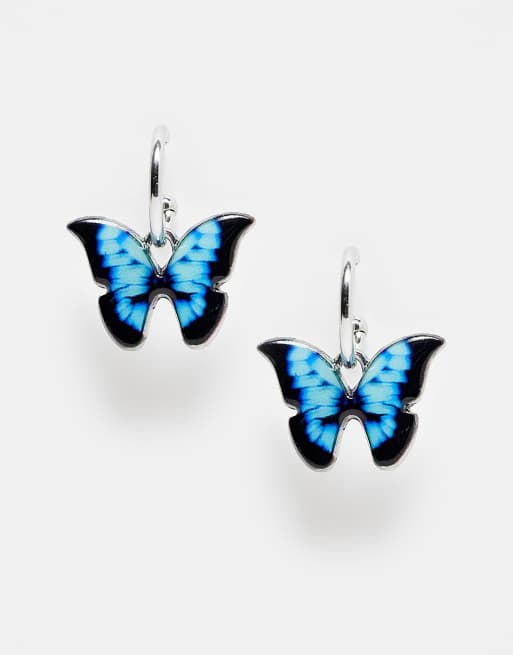 River Island huggie hoop earrings with butterfly shape charm