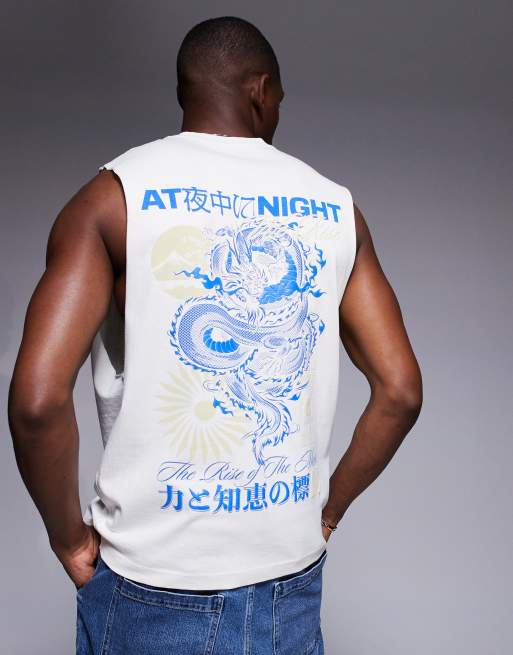 River Island Japanese moon and dragon back print tank in ecru
