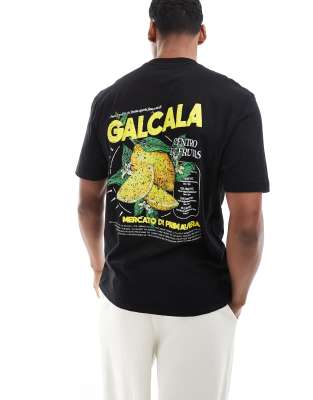 River Island lemon back print t-shirt in black