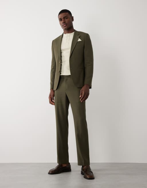 River Island linen-blend suit pants in khaki