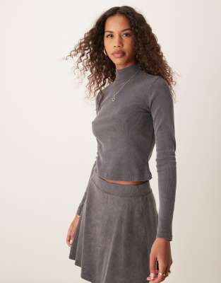 River Island long sleeve turtle neck top in dark grey (part of a set)