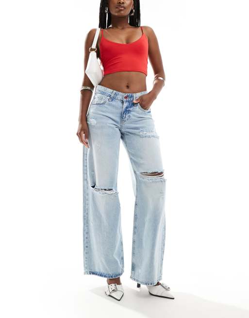 River Island low rise baggy jeans in lightwash blue