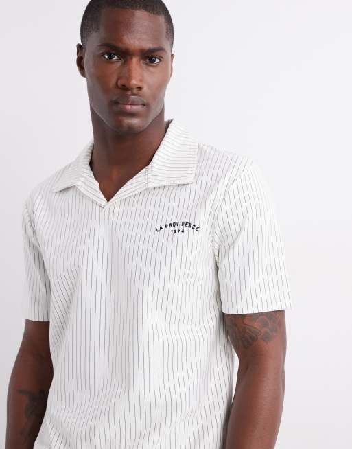 River Island open neck polo in cream stripe (part of a set)