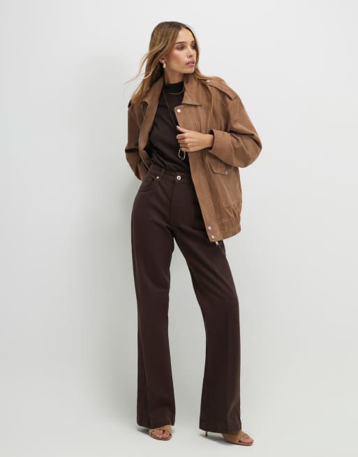 River Island pleat detail bootcut jeans in dark brown