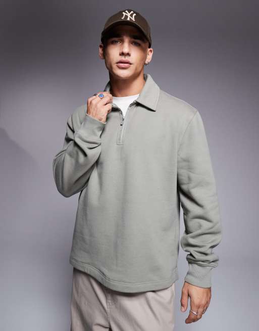 River Island quarter zip collared sweatshirt in light khaki