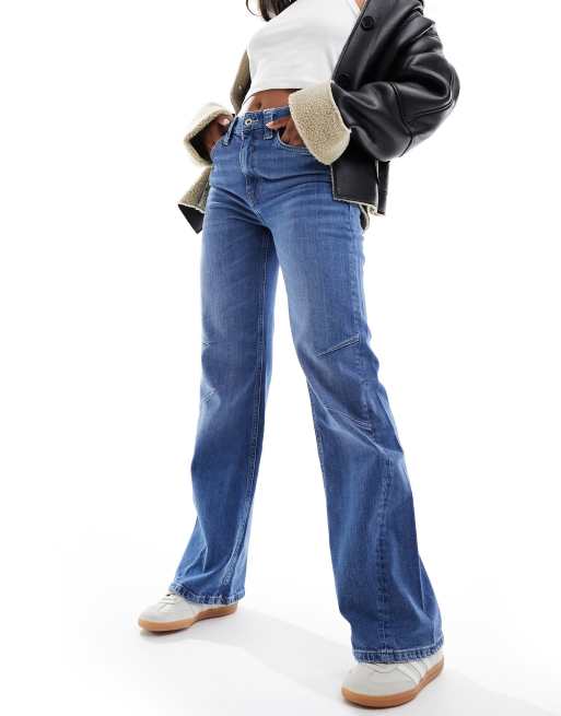 River Island seam detail wide leg jeans in medium blue