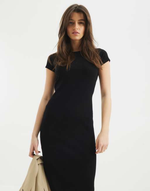 River Island short sleeve midi dress in black