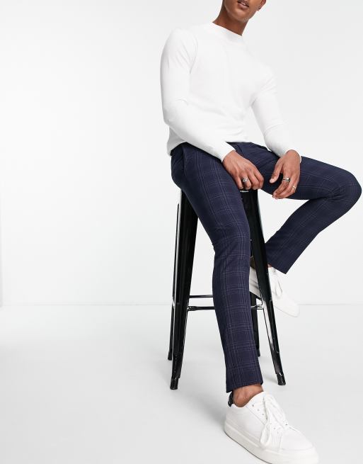 River Island skinny check pants in navy