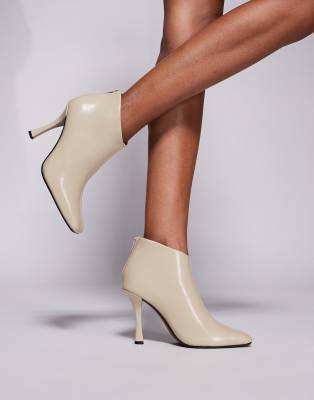 River Island slanted clean heeled boots in cream