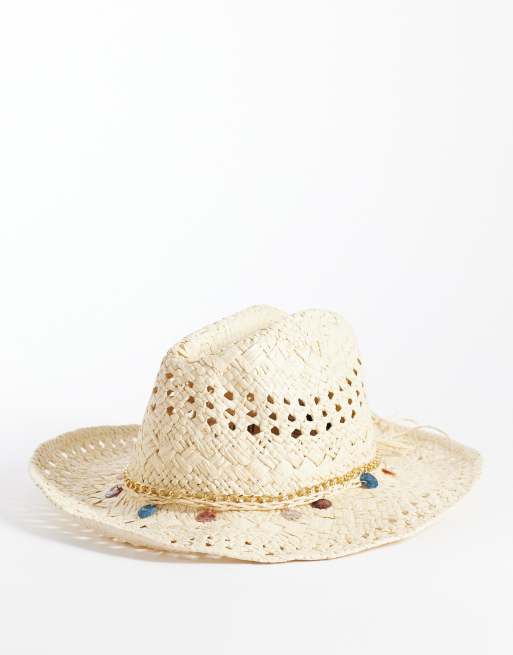 River Island straw hat with coin detail in cream