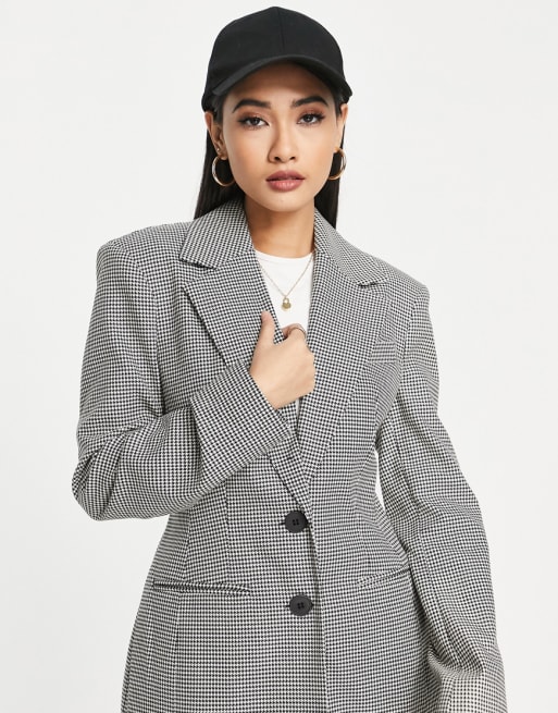 River Island tailored pants and blazer set in black houndstooth