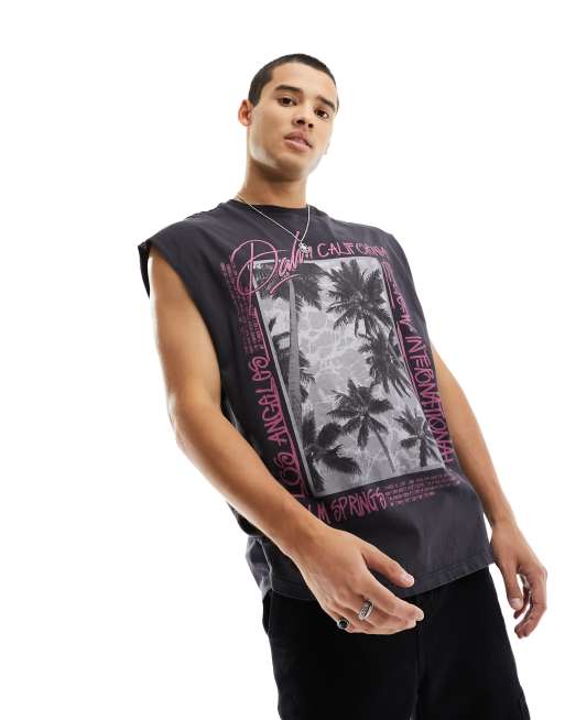 River Island washed palm singlet in black