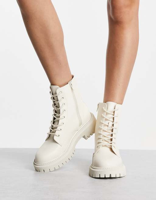 Rule London Exclusive River PU lace up ankle boots in ecru