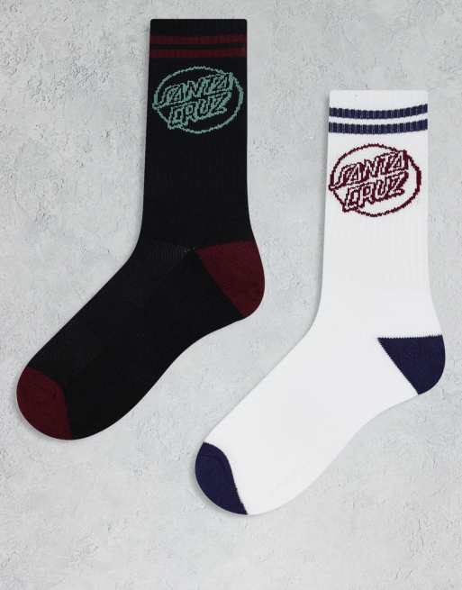 Santa Cruz 2 pack logo socks in black and white