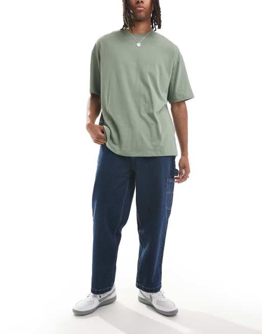 Santa Cruz baggy carpenter jeans in dark wash blue with contrast stitching