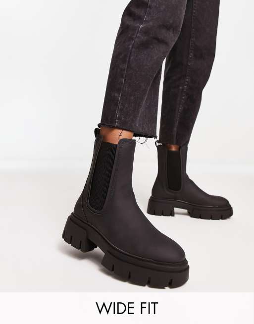 schuh Wide Fit Amaya split sole chunky calf boots in black