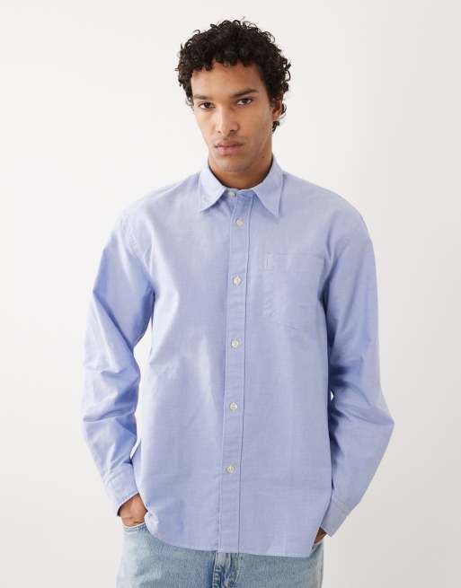 Selected 100% cotton long sleeve shirt in light blue