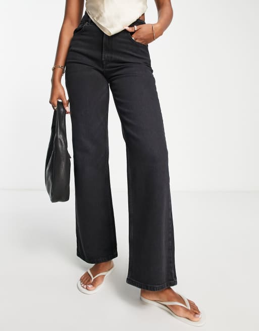 Selected Femme Alice cotton wide leg jeans in black - BLACK