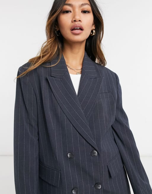 Selected Femme double breasted blazer and wide leg pants co-ord in pinstripe
