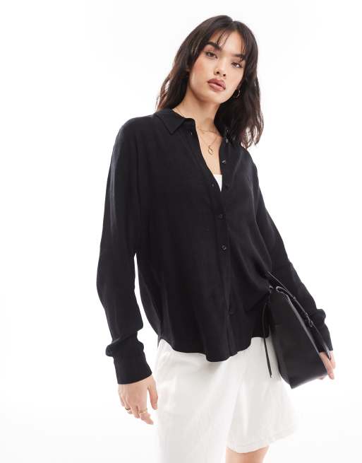 Selected Femme linen touch shirt in black