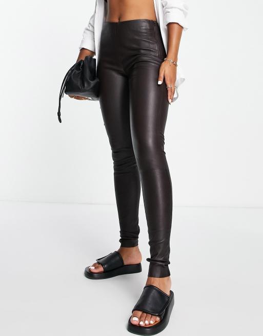 Selected Femme real leather leggings in brown