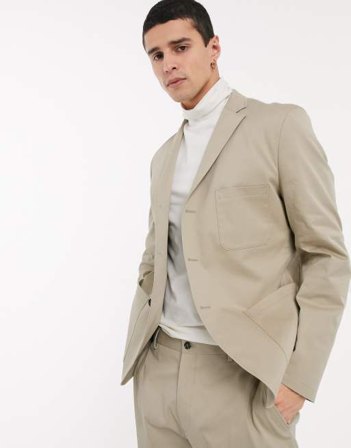 Selected Homme cotton slim fit patch pocket cotton suit jacket in stone