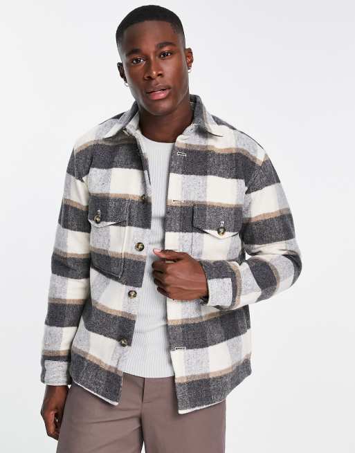 Selected Homme lined check jacket in cream and grey