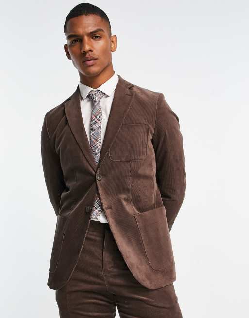 Selected Homme slim fit suit jacket in brown cord