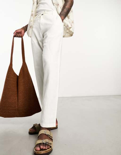 Selected Homme slim tapered linen mix pants in white