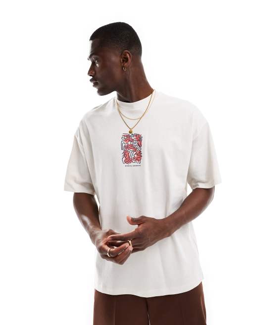 Selected Homme super oversized t-shirt with central print in cream