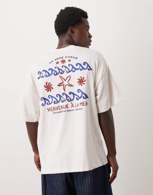 Selected oversized heavyweight t-shirt with sea back print in off white