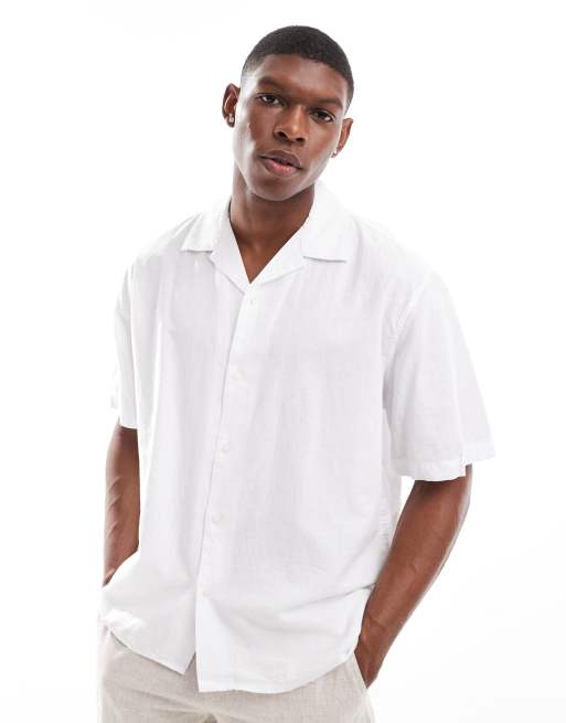 Selected oversized linen mix revere collar shirt in white