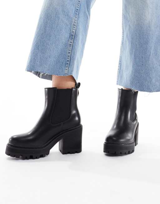 SEQWL Wide Fit Fuzzy chunky chelsea boots in black