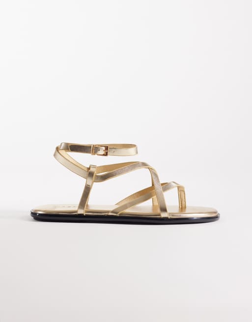 SEQWL Wide Fit strappy flat sandals with buckle detail in gold