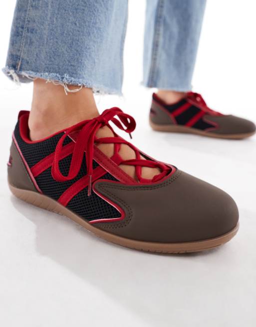 SEQWL lace up detail ballet sneakers in chocolate