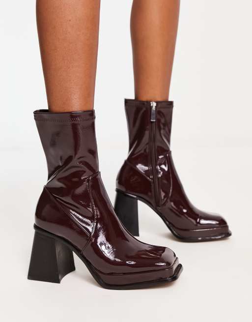 Shellys London Jupiter sock boots in chocolate high shine patent