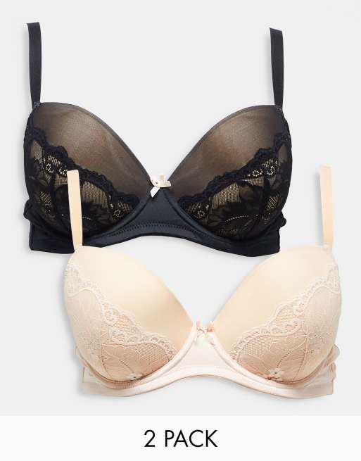 Simply Be 2 pack lace padded plunge bra in black and blush