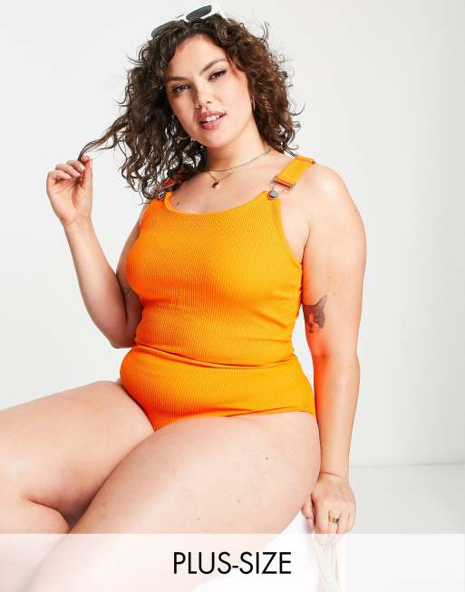 Simply Be crinkle swimsuit in bright orange