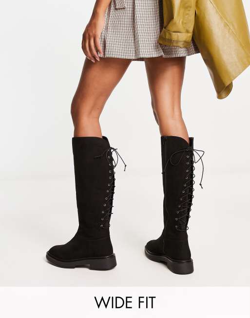 Simply Be Extra Wide Fit suedette lace up back knee boots in black