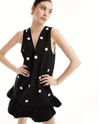 Sister Jane Heirloom pinafore mini dress in black